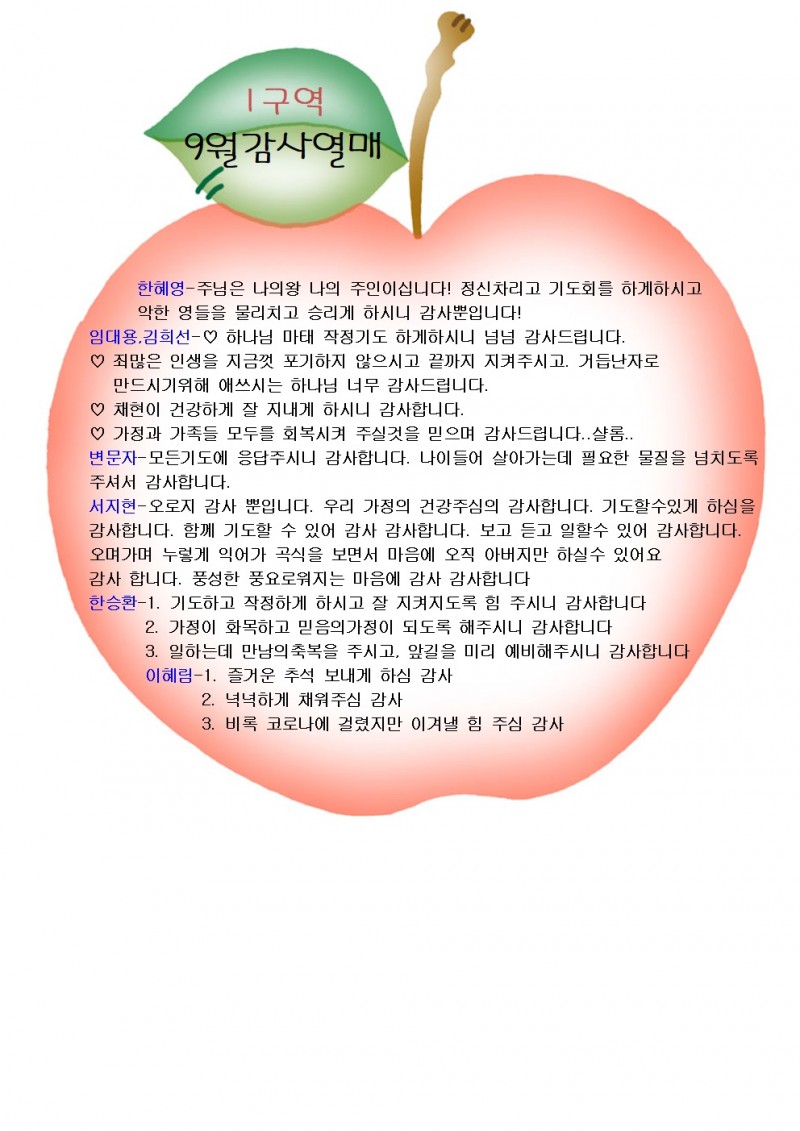 2022.9월 감사열매 1,2구역