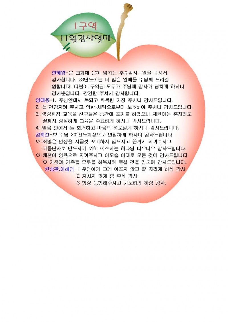 2022.11월 감사열매 1,2구역