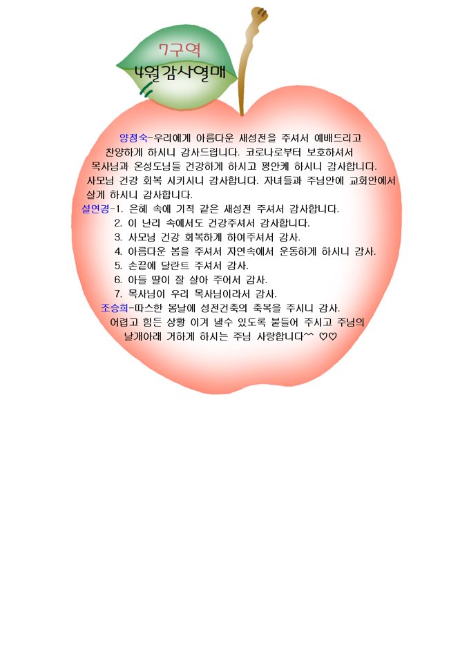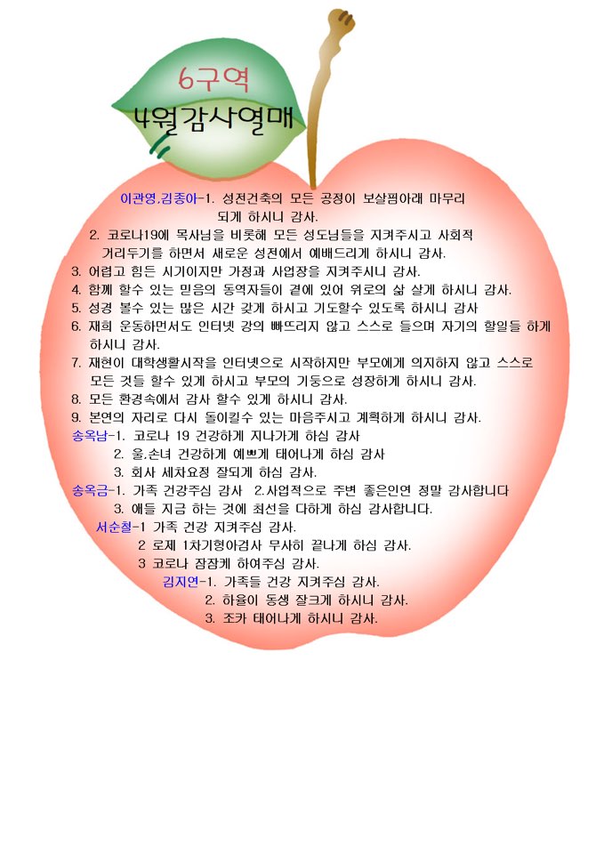 2020.4월 감사열매 6,7구역 작성자 김유경 작성일20-07-09 18:46 조회505회 댓글0건 관련링크 목록 본문 2020.4월 감사열매 6,7구역 댓글목록 등록된 댓글이 없습니다. 목록